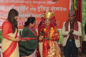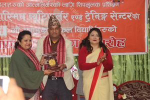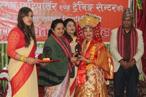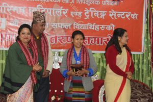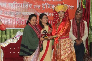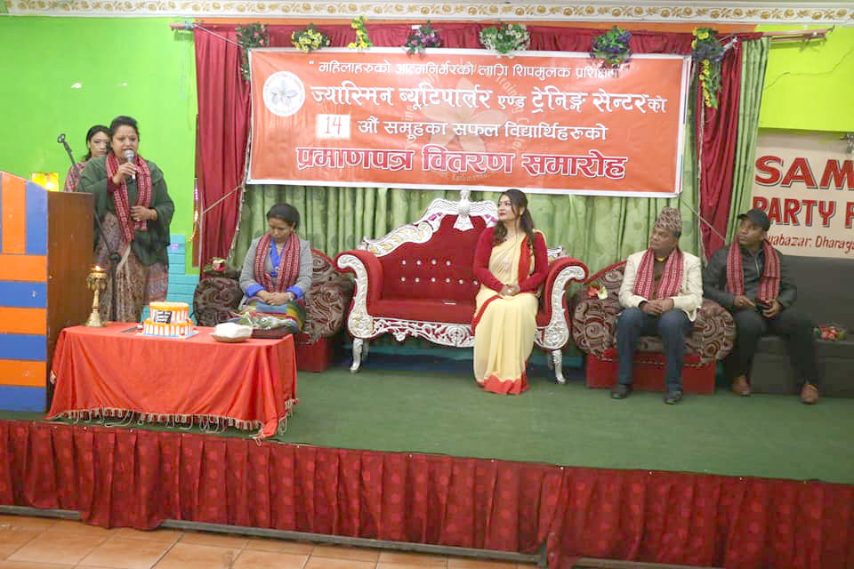 जस्मिन ब्यूटी पार्लर एण्ड टे«निङ्ग सेन्टरका संस्थापक अध्यक्ष शर्मिला मुनिकारको सभापतित्वमा भएको कार्यक्रममा तालिमका उत्कृष्ट तीनलाई ट्रफि पनि प्रदान गरिएको थियो ।
