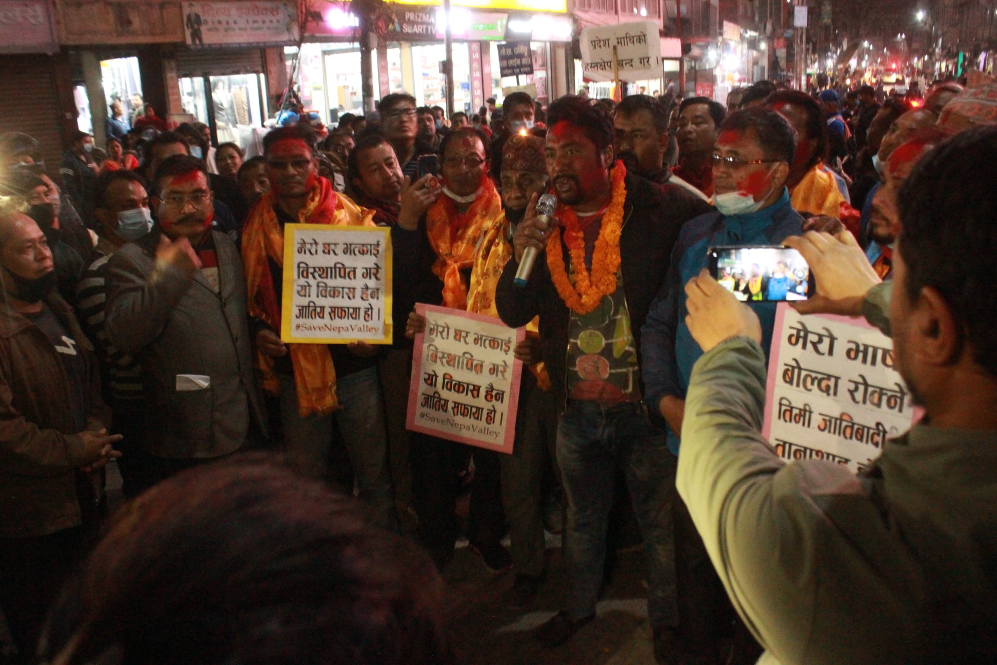 कार्यक्रममा बोल्दै बालाजु काण्डमा गत बुधबार पक्राउ परेर आज रिहा भएका महेश्वर मानन्धरले संविधानले दिएको मातृभाषा बोल्ने अधिकार राज्यले खोस्न मिल्छ र भन्दै प्रश्न गरे । ‘मैले मेरो दाजुभाईसँग मेरो मातृभाषामा कुरा गर्छु, मलाई कसले रोक्ने ?’, मानन्धरले भने । ‘संविधान दिएको अधिकार खोस्न खोज्ने प्रहरी प्रशासन के संविधानभन्दा माथि हो ?’ बालाजुमा स्थानीयको घर भत्काएर सूचना केन्द्र बनाउन लागेको दावी गर्दै मानन्धरले प्रश्न गरे ‘के राज्यको सूचना केन्द्र बनाउनलाई जनताको घर भत्काउने हो ? खइ त, संविधानले दिएको हाम्रो बासको अधिकार ?’