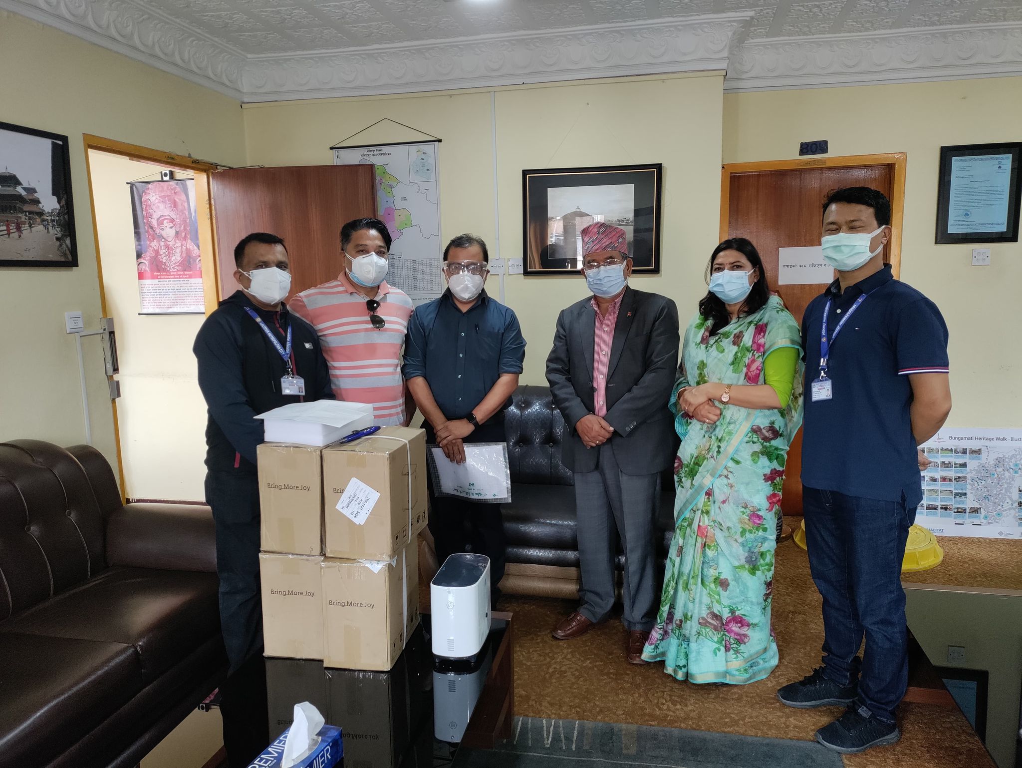 ललितपुर महानगरपालिका मेयर चिरिबाबु महर्जनलाई नेपाल र्यापिड एक्सन टास्क फोर्स (एन–आरएटी) समुहका नेपाल राईजिङ्ग, युएसए र गुथिको सहकार्यमा ५ वटा अक्सिजन कन्सन्ट्रेटर मेसिन जेठ १२ गते बुधवार हस्तान्तरण गरिएको छ ।