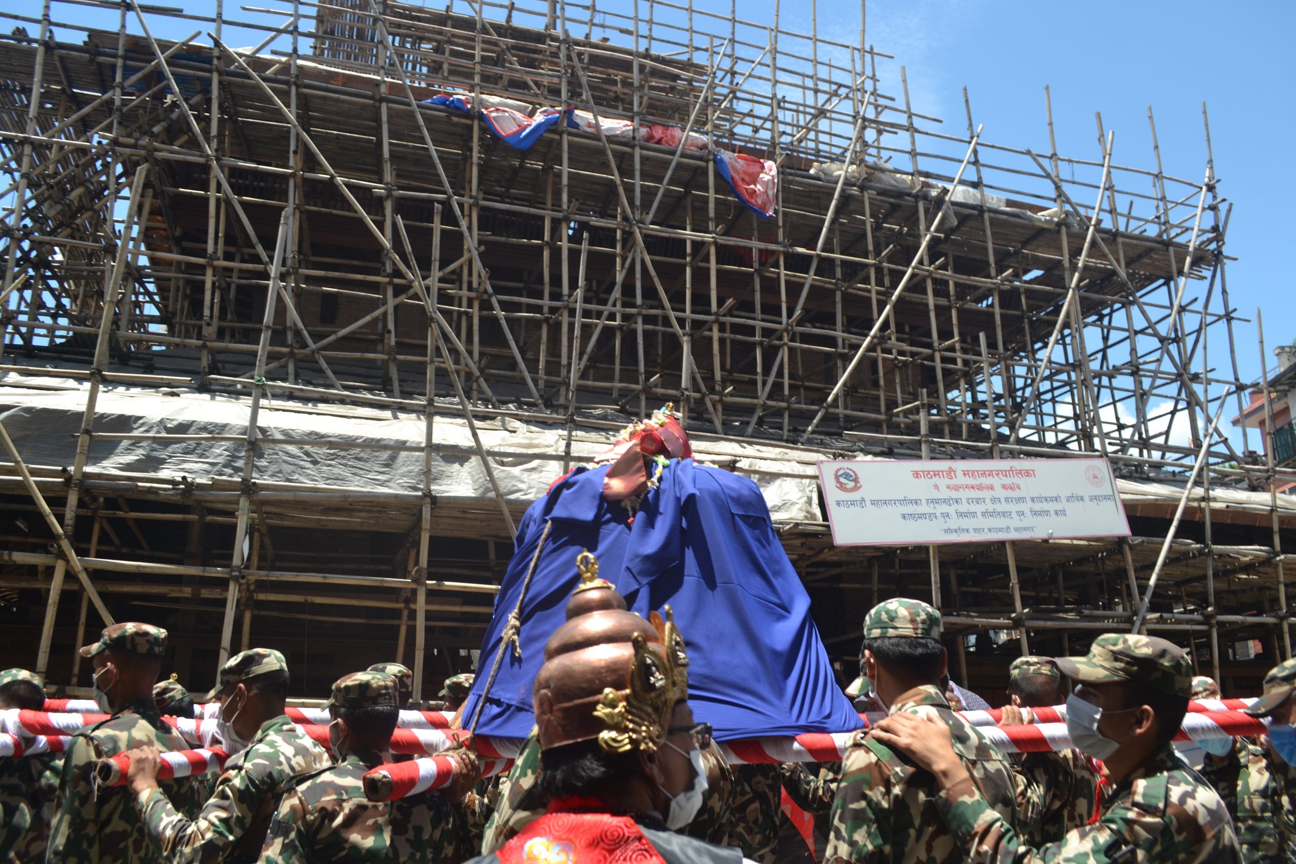 नेपालको ऐतिहासिक काष्ठमण्डपको पुनः स्थापना पुरा गर्न गजुर ल्याइसकेको छ । २०७२ सालको भुइचालोबाट भत्किएको सो काष्ठमण्डप पुननिर्माणको अन्तिम चरणमा पुगेको छ । यस क्रममा श्रावण १४ गते विहीवारका दिन गजुरको लागि भनि बनाएको काठको आधारलाई बाजागाजा सहित स्वागत गरिएको छ ।