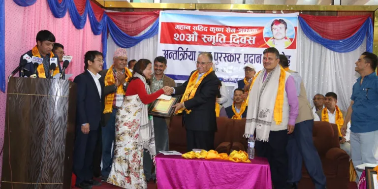 पत्रकार क्षेत्रमा आफ्नो अमूल्य समय दिइ लामो समय देखि पत्रकार क्षेत्रमा योगदान दिदै आएका चार वरिष्ठ पत्रकार प्रेस सेन्टर पत्रकार तथा साहित्यकार शहिद कृष्ण सेन ‘इच्छुक’को २०औँ स्मृति दिवश पारी पुरस्कृत तथा सम्मानित भएको छ ।