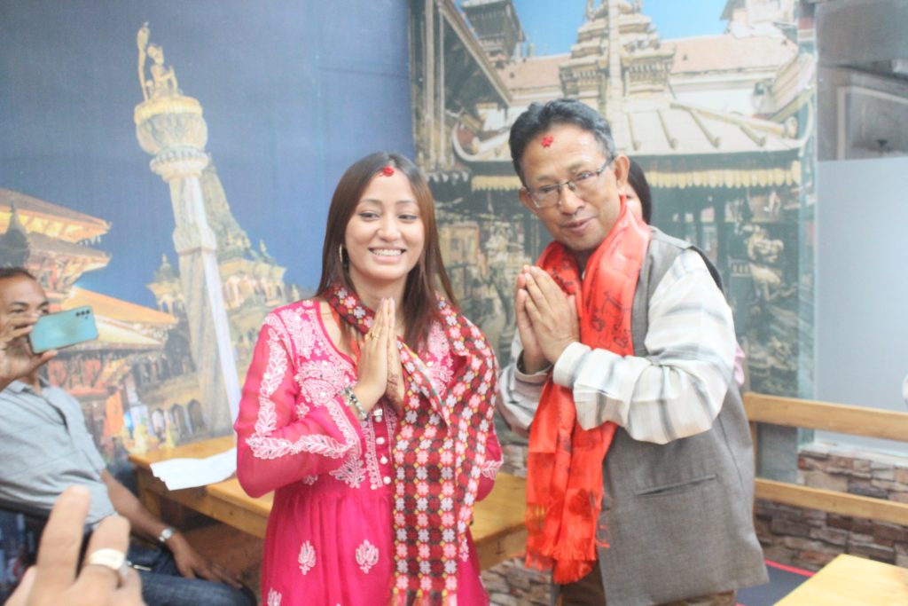 नेवाः सवाःमा भएकाे साे कार्यक्रममा आजै मात्र उद्घाटित रेष्टुरेन्टकी संचालिका कलाकार सलाेना बज्राचार्यलाइ शुभकामना स्वरूप खादा अाेढाइएकाे थियाे ।