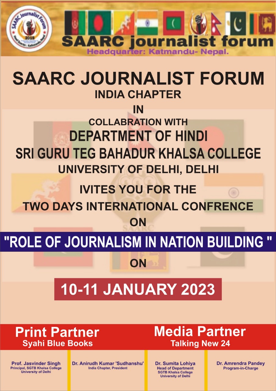 दिल्ली विश्वविद्यालयको हिन्दी विभाग, खालसा कलेजलाई यस सम्मेलनको संयुक्त आयोजकका रूपमा चयन गरिएको छ । सङ्गठनका अन्तर्राष्ट्रिय अध्यक्ष राजु लामाले तयारीमा सन्तोष व्यक्त गर्दै सम्मेलन अत्यन्तै सफल हुने विश्वास व्यक्त गरे । सम्मेलनबाट सार्क मुलुकमा पत्रकारिताको अवस्था र यसअघिका चुनौतीका बारेमा पनि जानकारी हुनेछ ।