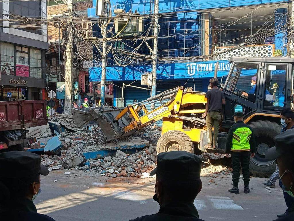 महानगर प्रहरी बलका प्रमुख प्रहरी उपरीक्षक राजुनाथ पाण्डेले सडक पेटीमा पैदल यात्रीलाई निर्वाध हिँड्न पाउने प्रबन्ध मिलाउन नेपाल प्रहरीसँग समन्वय गरेर संरचना हटाएको बताउनु भयो । संरचना हटाउनुअघि संरचनाभित्र रहेका सामान सारेर खाली गराइएको थियो ।