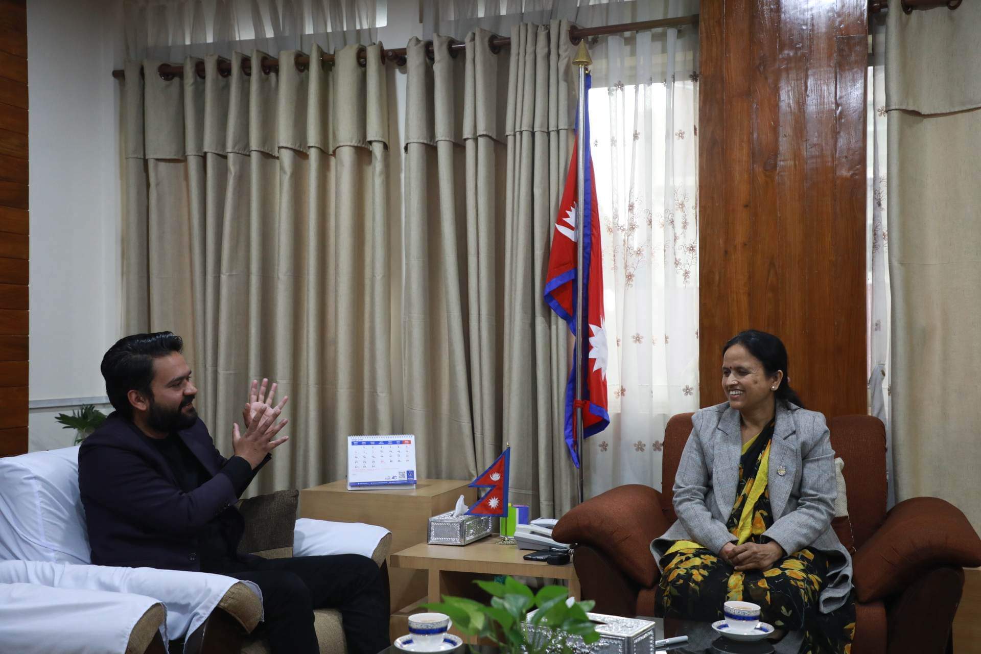 सूचना तथा संचारमन्त्री रेखा शर्मा र काठमाडौंका मेयर बालेन्द्र शाह बीच भेटवार्ता