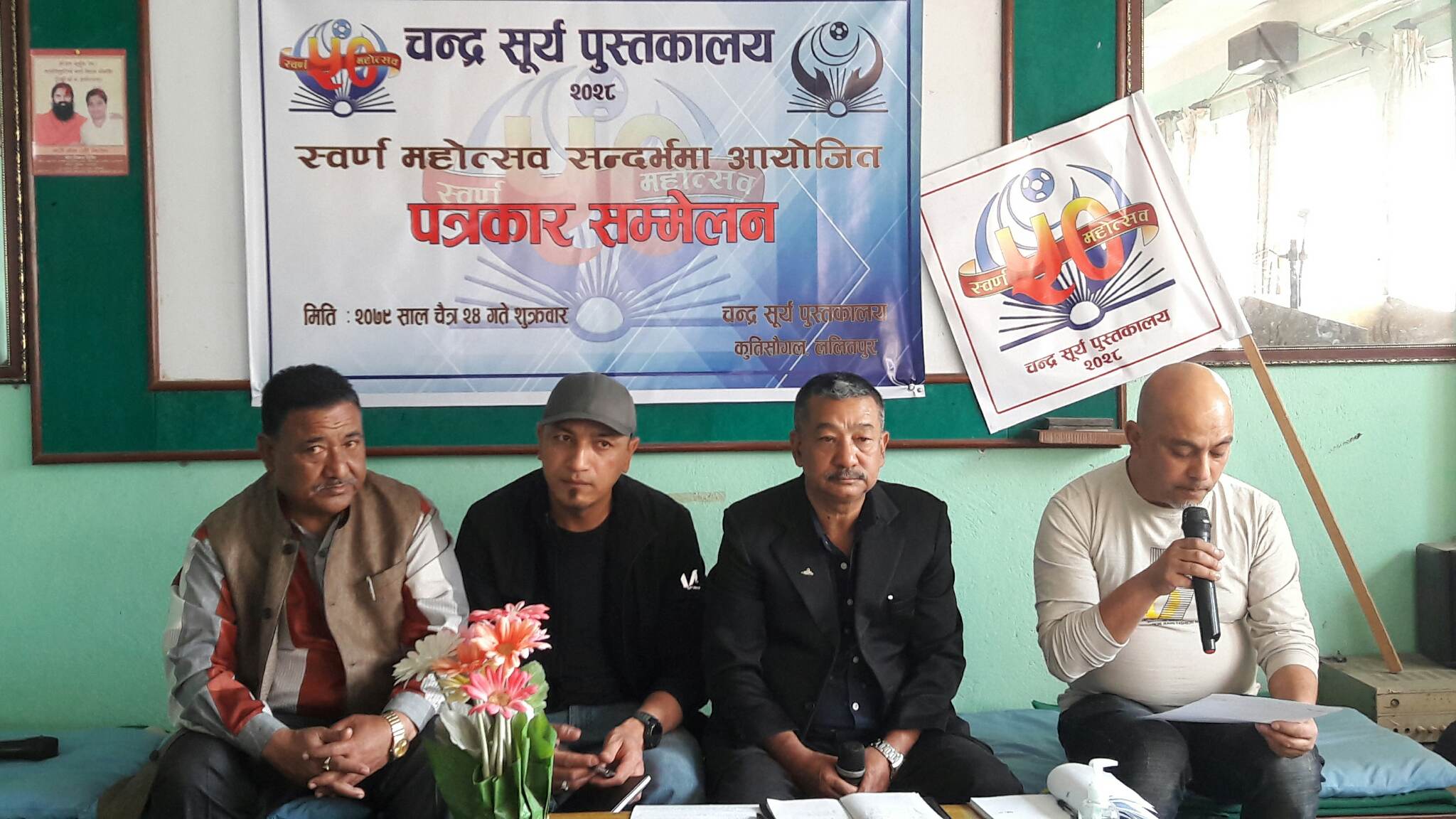विक्रम सम्वत २०२८ सालमा स्थापना भएको ललितपुरको चन्द्रसूर्य पुस्तकालयले स्वर्ण महोत्सवको समापन कार्यक्रम आउँदो चैत २८ गते गर्ने भएको छ । पुस्तकालयले शुक्रबार कुटिसौगलमा पत्रकार सम्मेलन गरेर आफ्नो स्थापनाको ५० वर्षको अवसरमा भएका विभिन्न कार्यक्रमको समापन चैत २८ गते गर्ने जानकारी दिएको हो।
