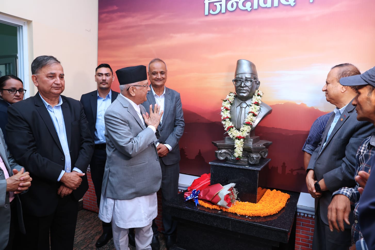 प्रधानमन्त्री एवं नेकपा (एमाले) अध्यक्ष केपी शर्मा ओलीले ललितपुर, च्यासलस्थित पार्टीको केन्द्रीय कार्यालयमा निर्माण गरिएकाे जननेता मदनकुमार भण्डारीकाे अर्धकदकाे प्रतिमाकाे आज अनावरण गर्नुभएकाे छ ।