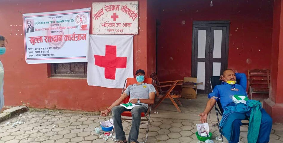 उपत्यकामा निषेधाज्ञा जारिरहेको विषम परिस्थितिमा पनि उपचारको क्रममा रगत आवश्यक पर्ने विरामीहरूलाई सहजरूपमा रगत उपलब्ध गराउन नेपाल रेडक्रस सोसाइटी, झौखेल उपशाखा ब्लड डोनर्स एशोसिएशन नेपाल (ब्लोदान) भक्तपुर जिल्लाको संयुक्त आयोजना र स्मृति साकोसको प्रायोजनमा रेडक्रस भवन, झौखेलमा भाद्र १४ गते आकस्मिक रक्तदान कार्यक्रम सम्पन्न भयो ।